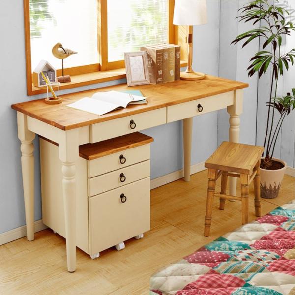 作業台やお子様と二人で一緒に使えるちょっと幅広の130cmのカントリーデスクに袖ワゴンをセットしました!
