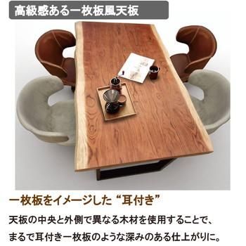 一枚板をイメージした “耳付き” 天板の中央と外側で異なる木材を使用することで、まるで耳付き一枚板のような深みのある仕上がりに。